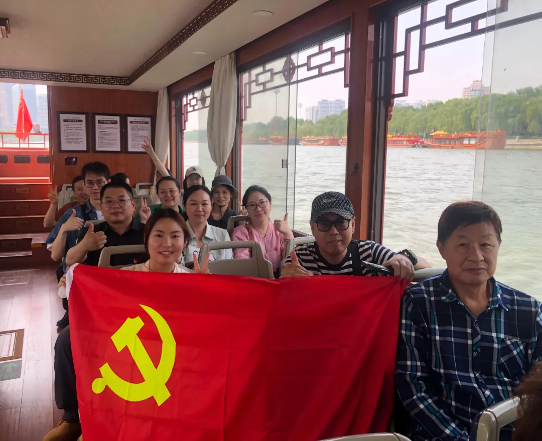 千年运河,碧波依旧。下午14:00,活动转场至大运河公园。全体党员登上游船,开启一场别具一格的文化体验。